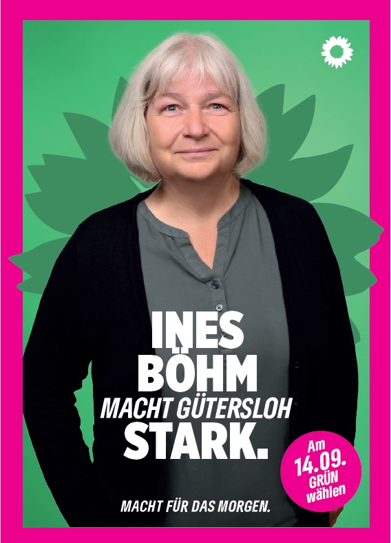 9. Ines Böhm Ines Böhm kandidiert auf Listenplatz 9 für den Wahlkreis 9 (Janusz Korczak-Gesamtschule).Liebe Wählerinnen und Wähler,ich bin Ihre Kandidatin für den Stadtrat und den Kreistag in Gütersloh – meiner Heimatstadt, in der ich geboren und fest verwurzelt bin.Gerade in herausfordernden Zeiten möchte ich weiterhin Verantwortung übernehmen: für soziale Gerechtigkeit, konsequenten Klimaschutz und einen fairen Umgang mit öffentlichen Mitteln.Gütersloh lebt vom Engagement vieler Menschen, die sich für andere einsetzen. Dieses Miteinander möchte ich stärken. Kinder und Jugendliche sollen hier sicher und frei aufwachsen. Familien, ältere Menschen und Alleinlebende brauchen verlässliche Unterstützung – direkt in ihrem Stadtteil. Dafür setze ich mich ein.Auch unser Klima braucht entschlossenes Handeln. Ich setze mich ein für mehr Grünflächen, besseren Nahverkehr, sicheren Radverkehr sowie eine nachhaltige und soziale Stadtentwicklung. Umwelt- und Naturschutz sind für mich kein „Extra“, sondern die Grundlage für eine lebenswerte Zukunft.In Gütersloh – besonders in Kattenstroth – bin ich viel mit dem Fahrrad, zu Fuß oder mit dem Bus unterwegs. Ich bin ansprechbar, höre zu und nehme Ihre Anliegen gern mit.Ich bitte Sie um Ihre Stimme für mich und damit für BÜNDNIS 90/DIE GRÜNEN bei der Kommunalwahl am 14.September!KontaktInstagramFacebookHier können Sie sich über die anstehende Kommunalwahl 2025 in Gütersloh informieren.Zur Interaktiven WahlkarteSie möchten mehr über unser Wahlprogramm und die Kandidat:innen erfahren? Hier geht’s zur Übersicht. Kommunalwahl 2025