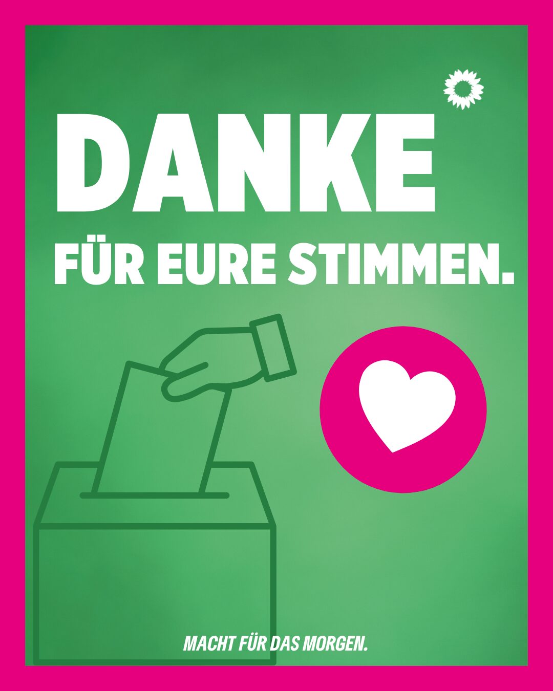 Danke 15. September 20256. Oktober 2025 Wir sagen DANKE. Danke an unsere Wählerinnen und Wähler in Gütersloh.Mit 10 Ratssitzen und unserem zweitbesten Ergebnis bleiben wir stark für euch!Unser Versprechen: Mit ökologischer und sozialer Politik setzen uns weiter für ein zukunftsfähiges und lebenswertes Gütersloh ein. Für euch und mit euch!2% über dem Landesdurchschnitt! Obwohl wir auch Stimmen verloren haben, zeigt dieses Ergebnis deutlich: Eure Stimme für grüne Politik in Gütersloh macht den Unterschied!Ein großes Dankeschön auch an alle Wahlkämpfer:innen und Unterstützer:innen – euer Engagement ist großartig!