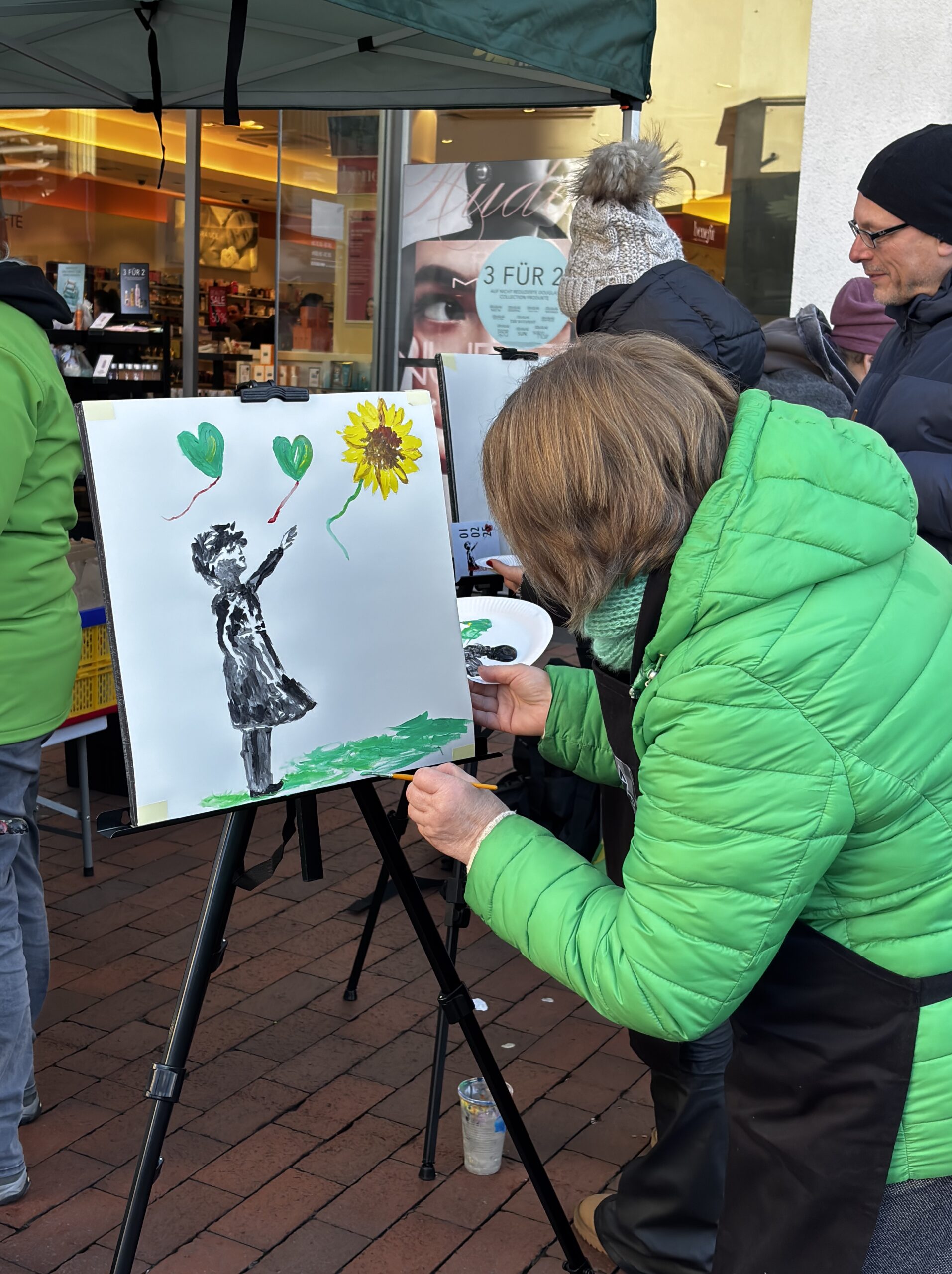 Infostand mit Kunstaktion 3. Februar 20254. Februar 2025 Bei schönstem Sonnenschein haben wir am Wochenende wieder Menschen über das Grüne Wahlprogramm informiert und viele tolle Gespräche geführt.Highlight dabei die Kunstaktion an unserem Infostand in der Innenstadt. Großer Dank hierfür geht an den Künstler Amadeus Fuchs, mit dessen Unterstützung viele schöne Bilder im Banksy-Style entsanden sind.Toll, dass so viele Menschen mitgemacht haben.Und Danke liebe Gütersloher:innen für den Zuspruch und den Austausch!