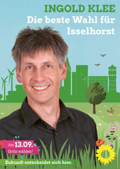 10. Ingold Kleekandidierte im Wahlkreis 090 – Isselhorst (Evangelisches Gemeindehaus Isselhorst)Liebe Wählerinnen und Wähler,ich bin Ihr Grüner Kandidat für den Gütersloher Stadtrat. Ich bin Elektroingenieur, verheiratet und Vater zweier erwachsener Kinder. Mir liegen besonders eine zukunftsweisende Mobilität,der Umstieg hin zu klimafreundlicher Energie sowie der Erhalt unserer Natur und Umwelt am Herzen. Dieses sind die alles entscheidenden Themen für unsere gemeinsame Zukunft. Vor dem Hintergrund des Klimawandels ist es notwendig, auch in Gütersloh in den kommenden Jahren entschlossen zu handeln.Daher möchte ich mich als Ihr Kandidat für diese Zukunftsthemen stark machen. Seit 2006 ist Isselhorst mein Zuhause. Hier zu wohnen, empfinde ich als etwas ganz Besonderes und ich schätze unser kleines Dorf sehr. Als aktiver Isselhorster möchte ich Sie im Gütersloher Stadtrat vertreten.Ich bedanke mich für Ihre Stimme für mich und damit für Bündnis 90/Die Grünen bei der Kommunalwahl am 13. September!Ihr Ingold KleeVorstellungsvideo Inhalt von YouTube anzeigen Hier klicken, um den Inhalt von YouTube anzuzeigen. Erfahre mehr in der Datenschutzerklärung von YouTube. Inhalt von YouTube immer anzeigen Kontakt und mehr Informationen über michE-Mail